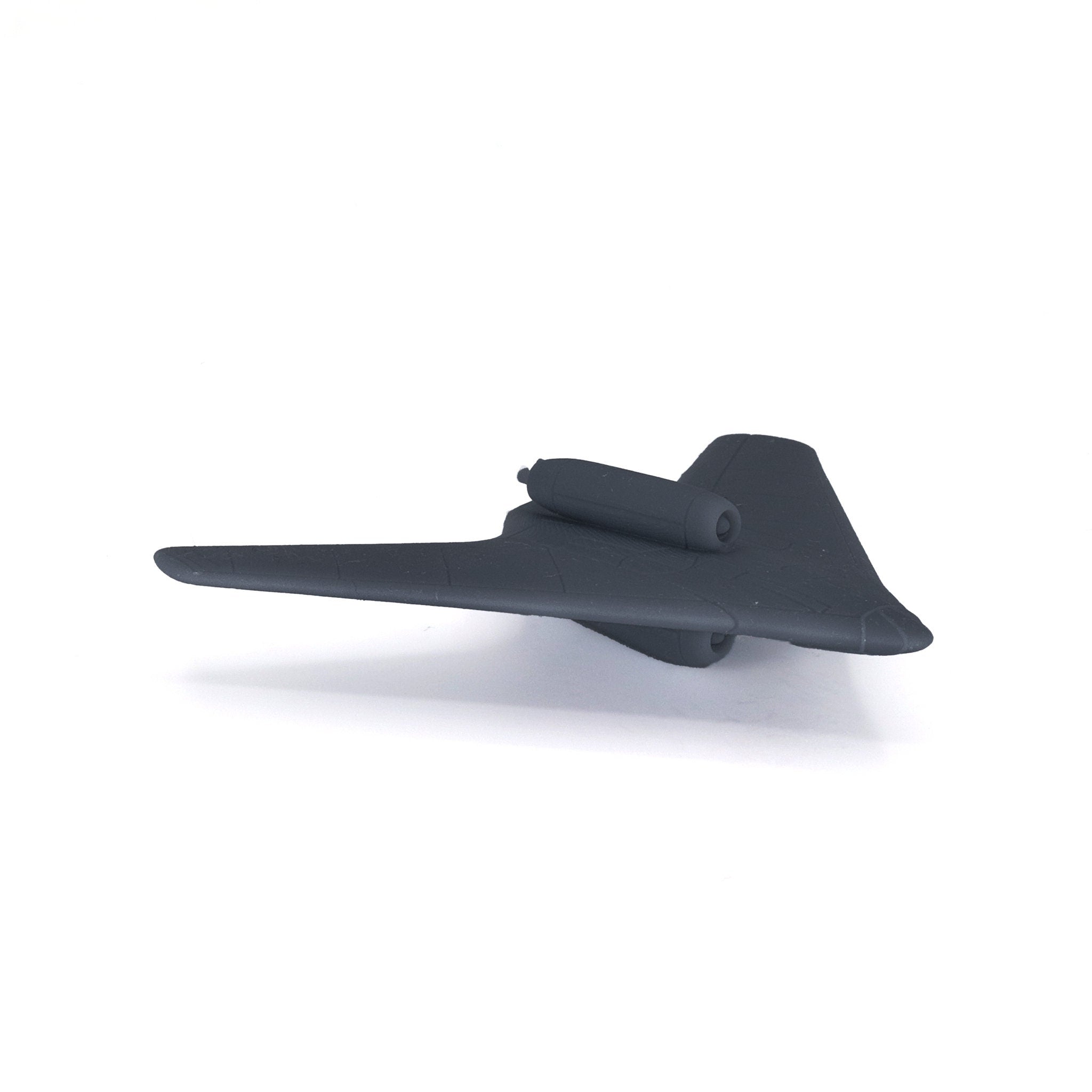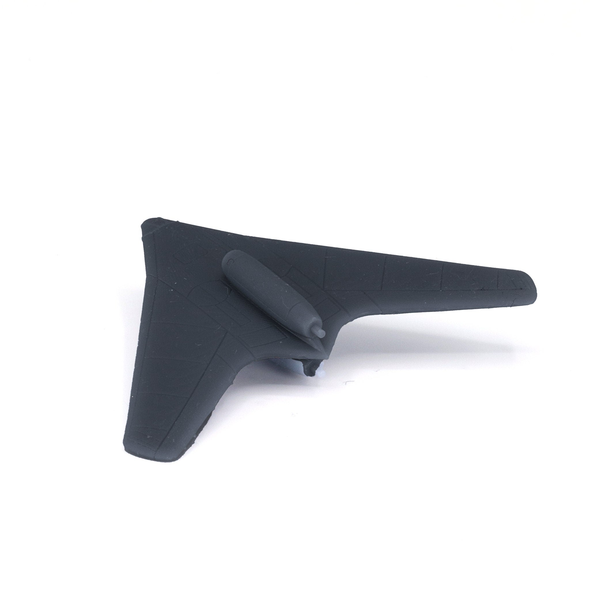 The Gotha Go P.60A was a flying wing that was powered by two turbojet engines near the rear of the wing center section, one above the wing and one below. One advantage to this arrangement was that any jet engine could be fitted, and maintenance would be easier with the engines in the exposed nacelles. However, in the designed Go P.60A, two BMW 003A-1 with 800 kp (1763 lbs) of thrust were to be used at first. Three fuel tanks were enclosed within the wings, one 1200 liter (317 gallon) tank in each outer wing panel and one 1200 liter (317 gallon) tank behind the cockpit. The pressurized and armored cockpit, located in the extreme nose, held two men who were in a prone (lying down) position. The prone position had the advantage of allowing the crew to withstand G-forces better, and was researched in the Berlin B9 test aircraft. This system was also used in the DFS 228 high altitude reconnaissance aircraft and the Henschel Hs 132 jet powered dive bomber. The main landing gear legs retracted to the front and rotated 90 degrees to lay flat. The nose gear was offset to the port side and retracted to the rear.