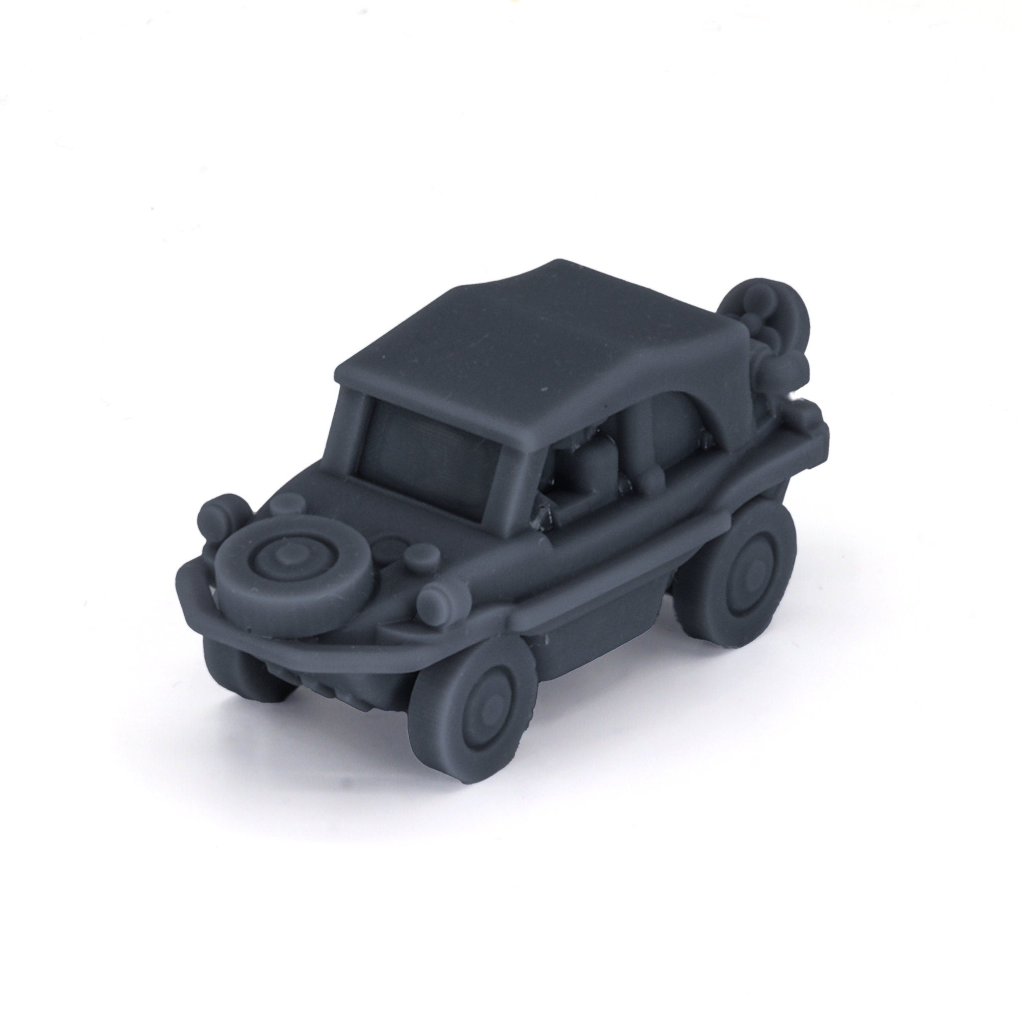 The Volkswagen Schwimmwagen (literally "swimming car") was an amphibious four-wheel drive off-road vehicle, used extensively by German ground forces during the Second World War. The Schwimmwagen is the most numerous mass-produced amphibious car in history