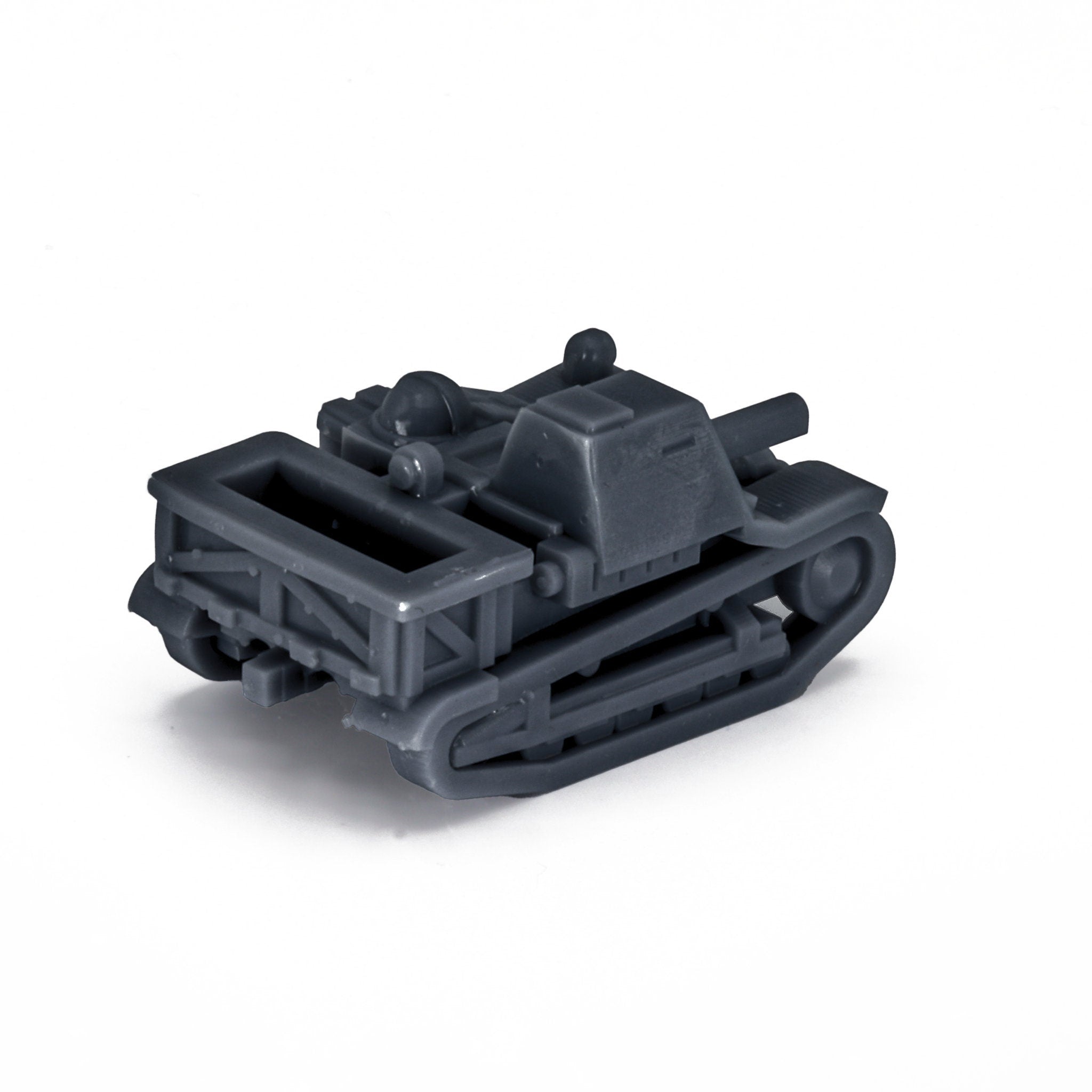 In 1930 the French Infantry decided to develop a light armoured vehicle able to tow and supply small cannon and mortars. In 1931 the Renault company was given the contract for production of its Renault UE, combined with the Renault UK trailer. In 1937, from a number of competitors, the Renault UE2 was chosen as an improved type for large-scale production. Of both types combined over five thousand were built, including licence production in Romania, and they were part of the standard equipment of all French infantry divisions. Most Renault UE vehicles in French service were unarmed; those in 1940 captured by Germany were used for a variety of purposes, including being armed with machine-guns, antitank-guns and rocket artillery.