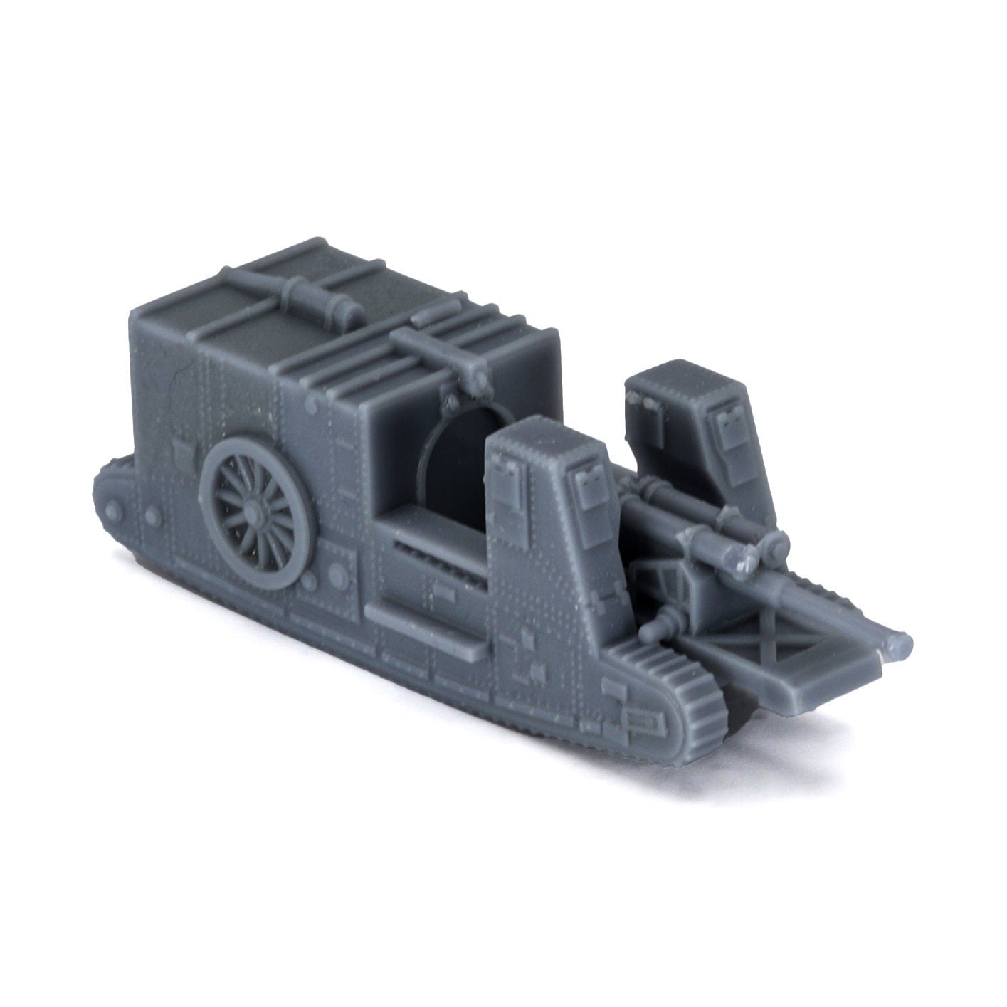 The Gun Carrier Mark I was a British vehicle of the First World War. The gun carrier was designed to transport a 6-inch howitzer or a 60-pounder gun forward soon after an attack to support infantry in advanced positions. Gun carriers were first used in the Battle of Pilckem Ridge (31 July – 2 August 1917) during the Third Battle of Ypres (31 July – 10 November 1917). The carriers moved guns and equipment but were used for the rest of the war mainly for carrying equipment and supplies through areas under fire, where porters in the open would have suffered many casualties. The 6-inch howitzer could be fired while mounted, making the Gun Carrier Mark I the first modern self-propelled gun, a weapon capable of independent action and having tactical mobility on the battlefield.