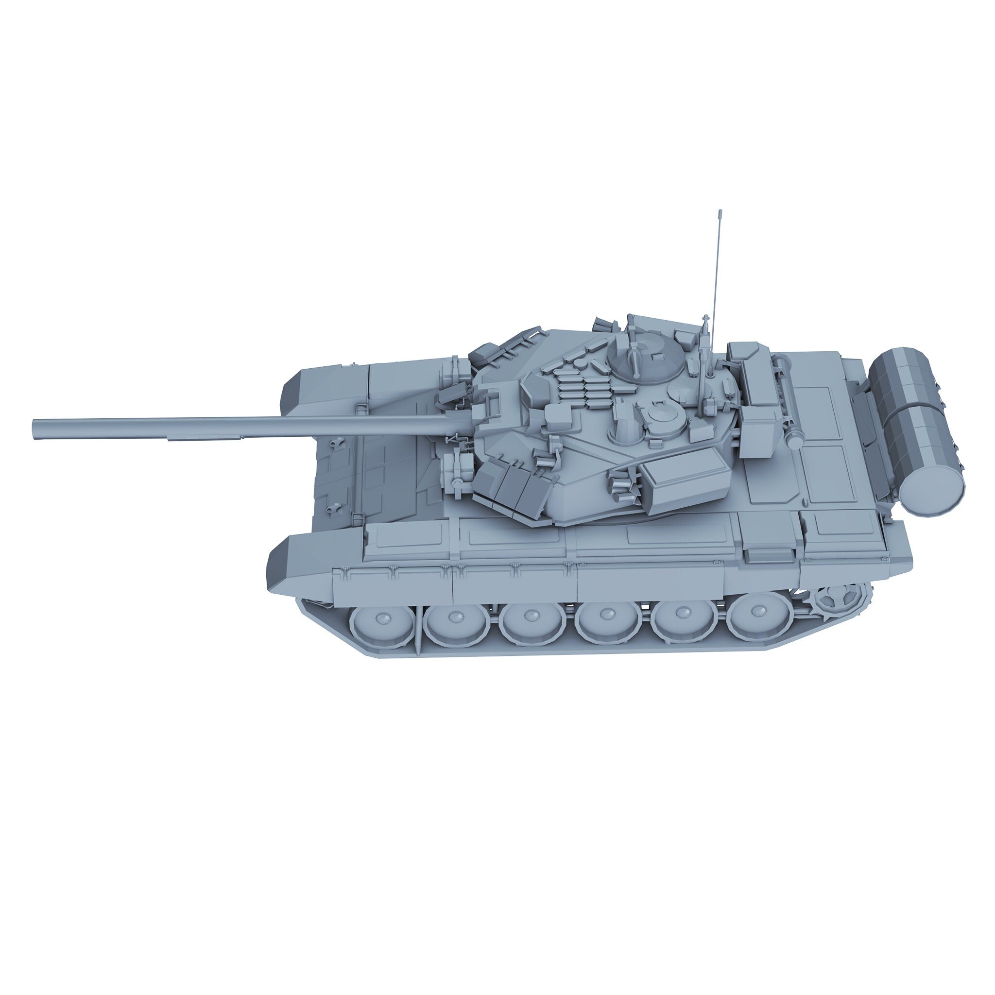 The T-90 [9] is a third-generation Russian main battle tank that entered service in 1993. The tank is a modern variation of the T-72B and incorporates many features found on the T-80U. Originally called the T-72BU, but later renamed to T-90, it is an advanced tank in service with Russian Ground Forces and the Naval Infantry. The T-90 uses a 125 mm 2A46 smoothbore main gun, the 1A45T fire-control system, an upgraded engine, and gunner's thermal sight. Standard protective measures include a blend of steel and composite armour, smoke grenade dischargers, Kontakt-5 explosive-reactive armour and the Shtora infrared ATGM jamming system. It was designed and built by Uralvagonzavod, in Nizhny Tagil, Russia.